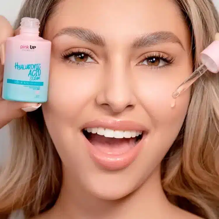 Sérum facial con ácido hialurónico de Pink Up, formulado para hidratar profundamente y mejorar la elasticidad de la piel. Su fórmula ligera y de rápida absorción ayuda a reducir líneas finas, promoviendo un rostro suave, radiante y rejuvenecido.